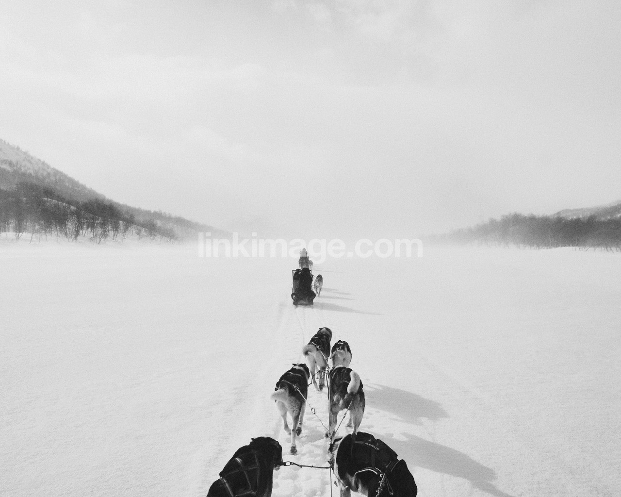 dog team, sled, dog, dogs, mountains, winter, adventure, snow, storm, wind, landscape