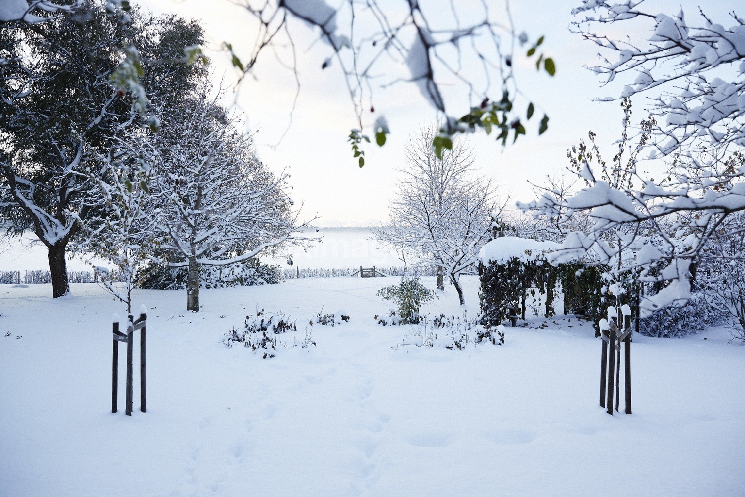 winter, snow, fog, white, nature, tree, landscape, winter landscape, sky, garden, discount, pasture, gate, fence