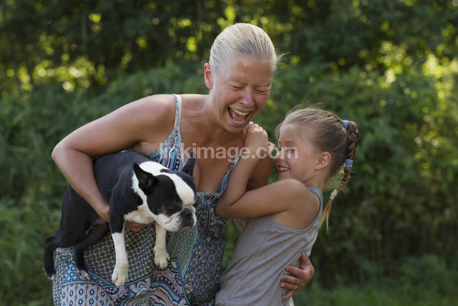 children, bus, daughter, family, girl, happy, dog, leave, play, mother, vicinity, holiday, underestimate, summer, three