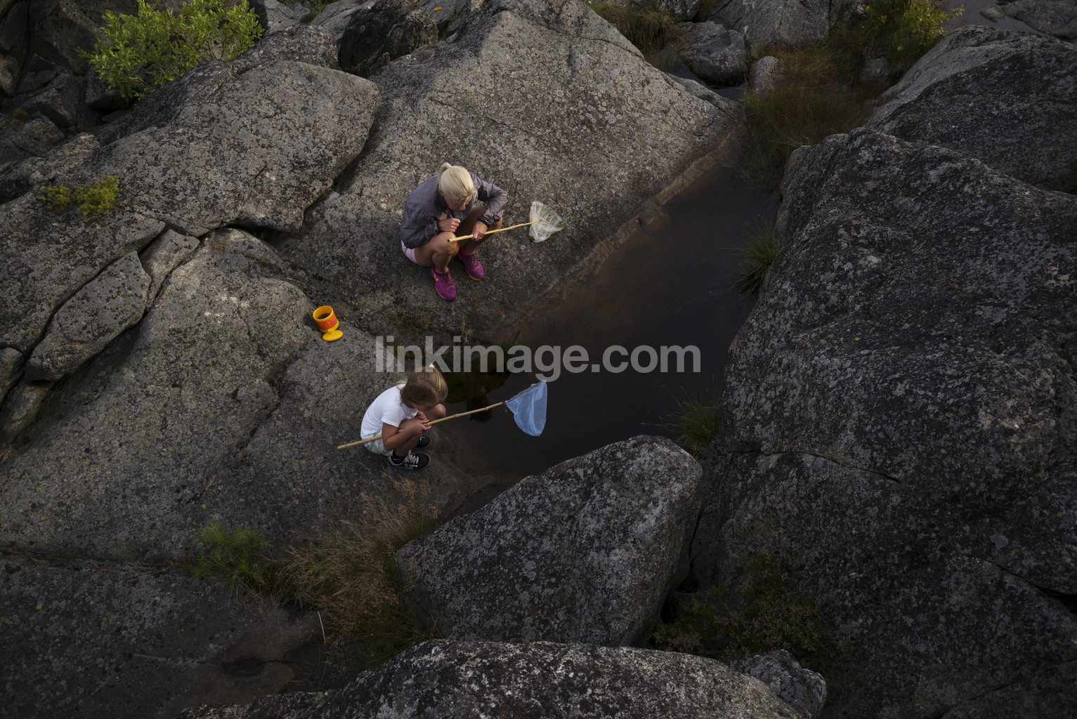 , children, fish, girl, catch, landing net, woman, play, mother, archipelago, summer, discover, water