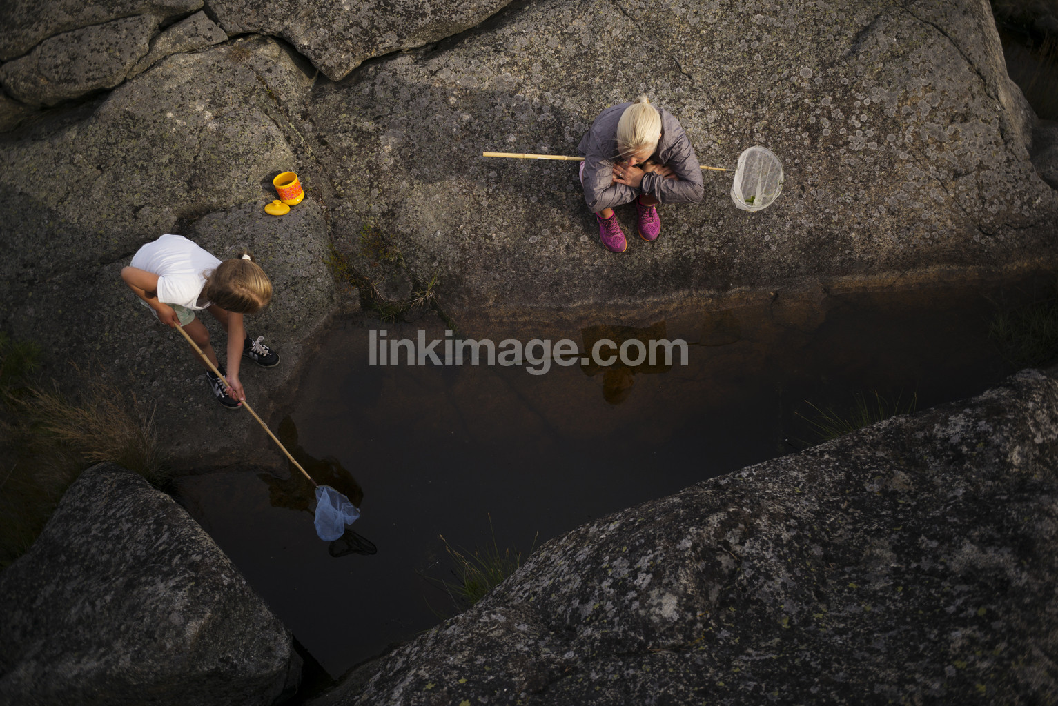 , children, fish, girl, catch, landing net, woman, play, mother, archipelago, summer, discover, water