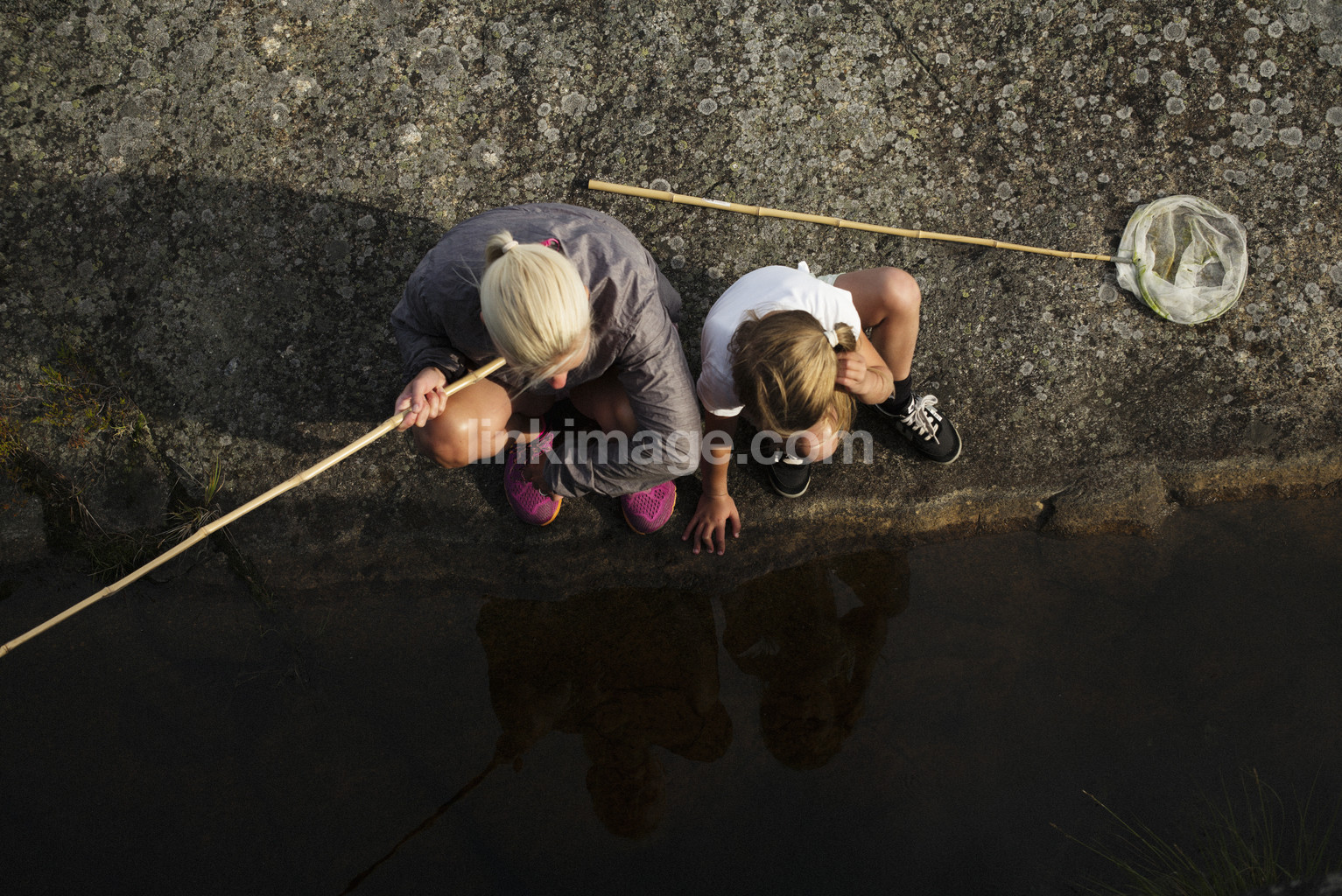 , children, fish, girl, catch, landing net, woman, play, mother, archipelago, summer, discover, water