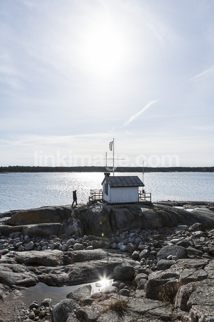 - mountain, blue, daylight, freedom, outdoor life, sea, sky, house, cut, man, environment, nature, reflection, trip, sjul, archipelago, sun, sunlight, stone, cottage, discover, discovery, view, water, island