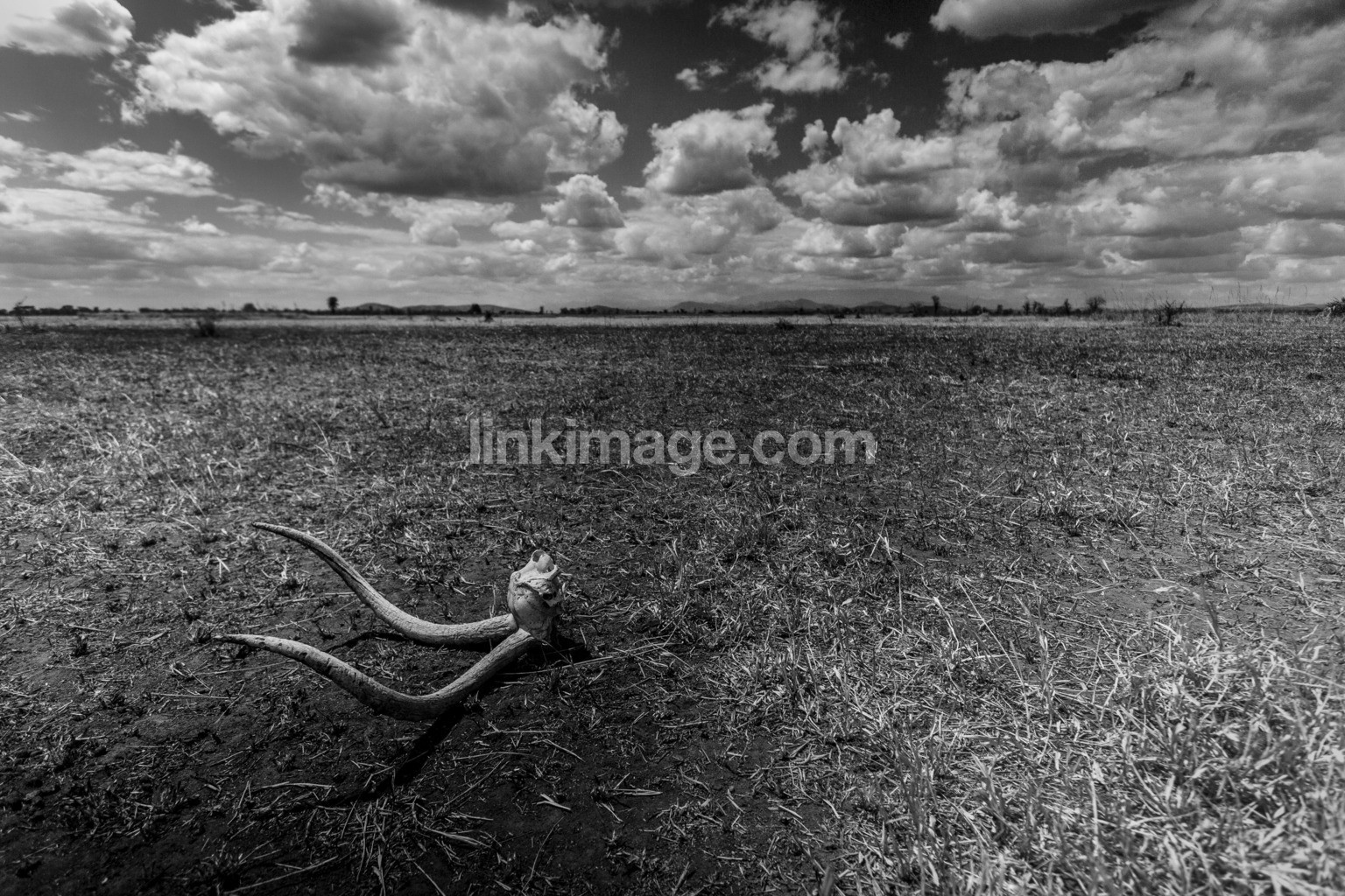 africa, animal, mammal, death, grass, sky, horizon, horn, landscape, cloud, nature, trip, safari, savannah, dry, discovery