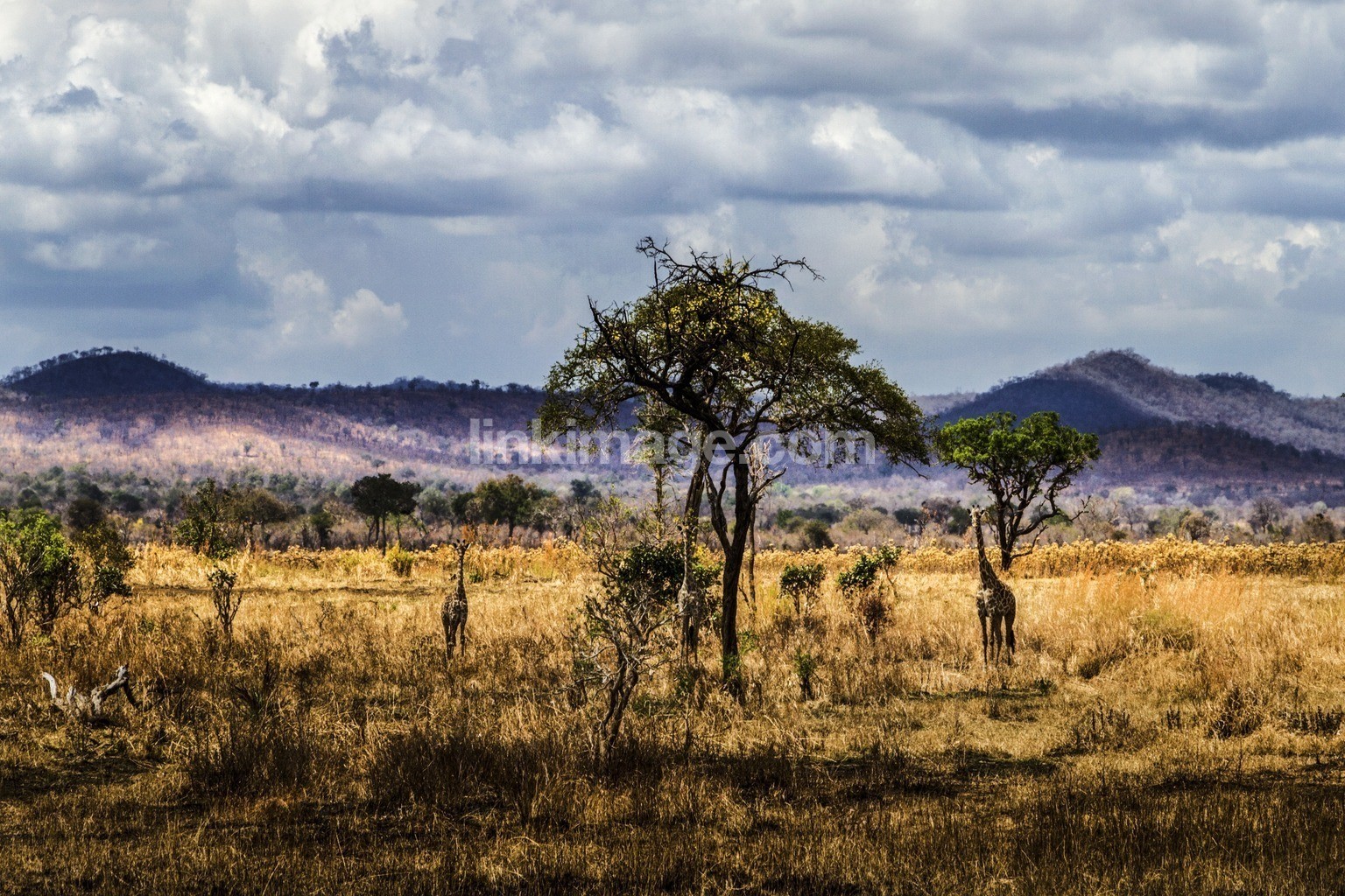 africa, mountain, animal, mammal, giraffe, grass, landscape, cloud, nature, safari, savannah, tree, discovery, holiday