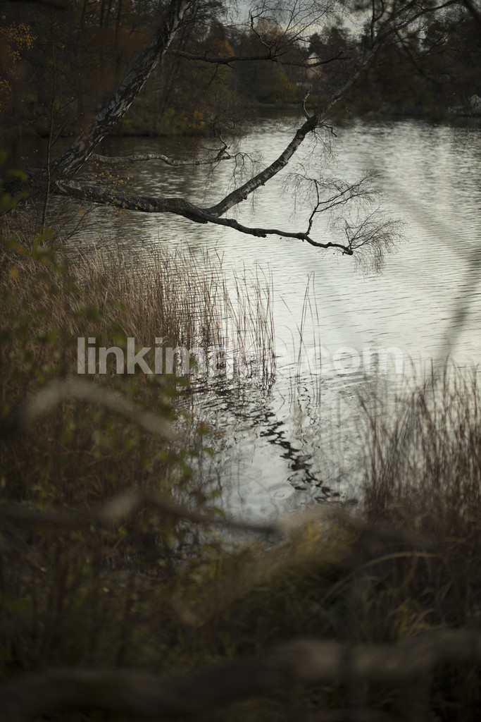 - evening, pattern, reflections, lake, reflection, calm, structures, water, surface, branches, forest, tree, beach, sharp