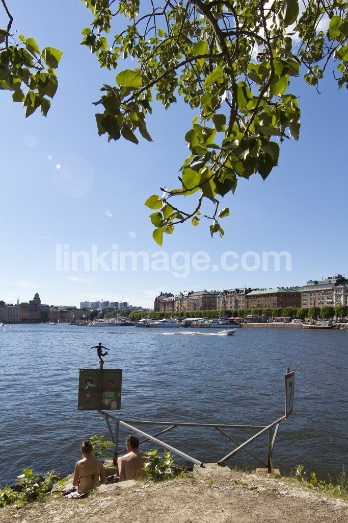 gbg, stockholm, sweden, djurgården, woman, man, nature, couple, holiday, sun, sunlight, summer, city, view, water