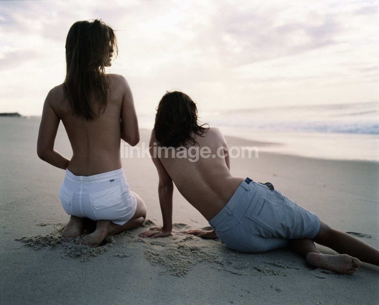 - shore, female, male, girl, nude, shorts, sand, lake, water, friends, leave, summer, jba112, naked