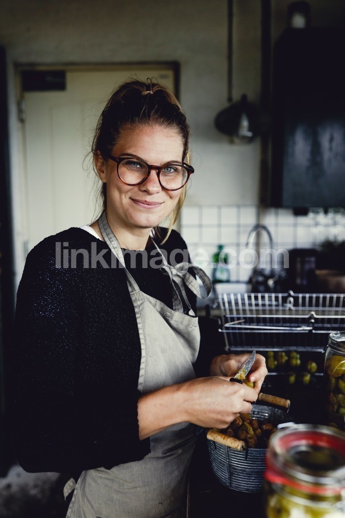 - , cans, fruit, apron, household chore, chef, preservation, woman, kitchen, cooking, plum