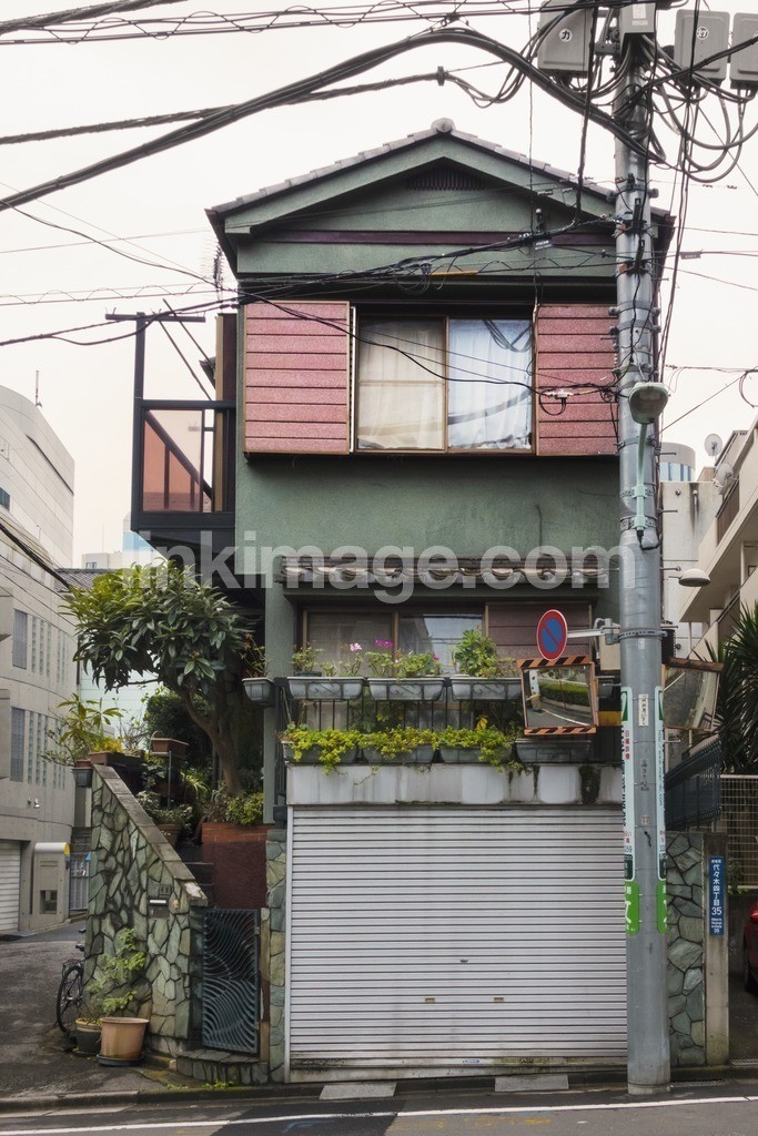 - japanese, tokyo, architecture, house, villa, narrow, garage, flower boxes, garden