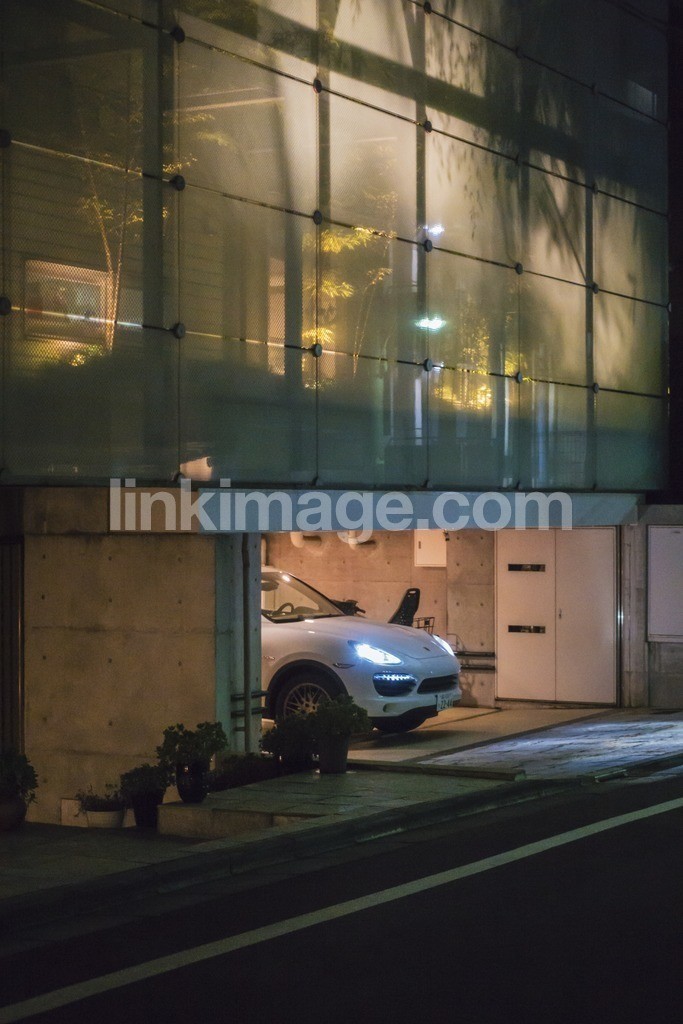 japanese, tokyo, architecture, house, villa, parking, car, facade, window, modern, evening, night