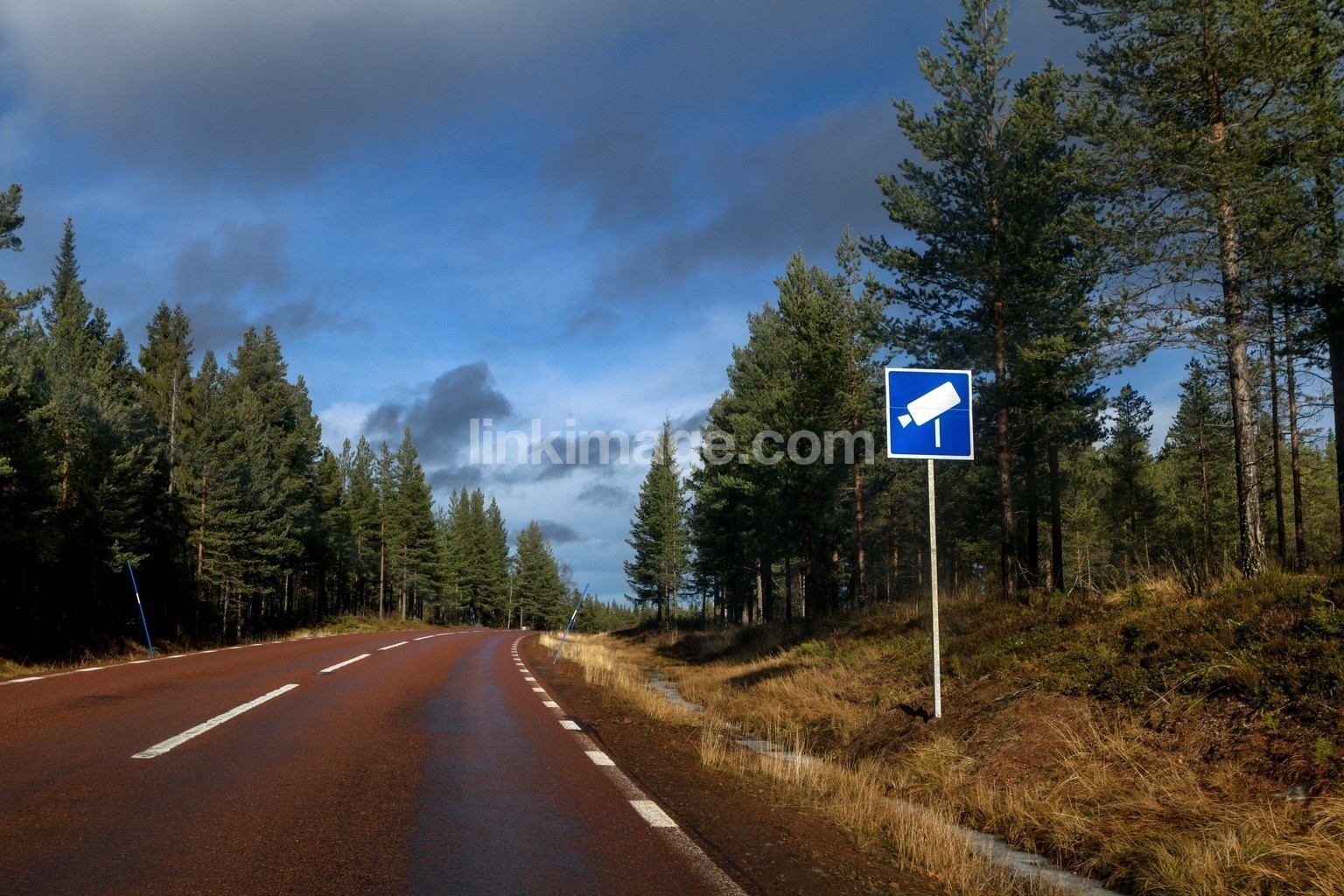 - car, fine, forward, freedom, travel, speed, sky, camera, countryside, landscape, country road, environment, nature, on the way, trip, roadtrip, holiday, forest, sign, sweden, security, tree, view, warning, go, monitoring