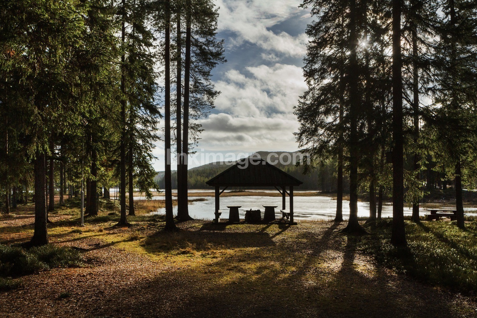 - idyll, kiosk, countryside, landscape, nature, break, rest area, trip, restaurant, roadtrip, lake, forest, swedish, sweden, pine, tree, view, water, way