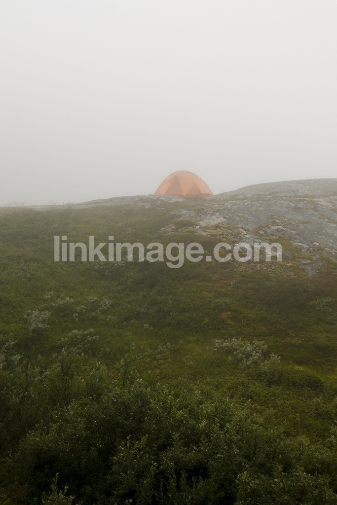 - camp, tent, outdoor life, fog, outdoors, peak, north, scandinavia, orange, two man tents, moss