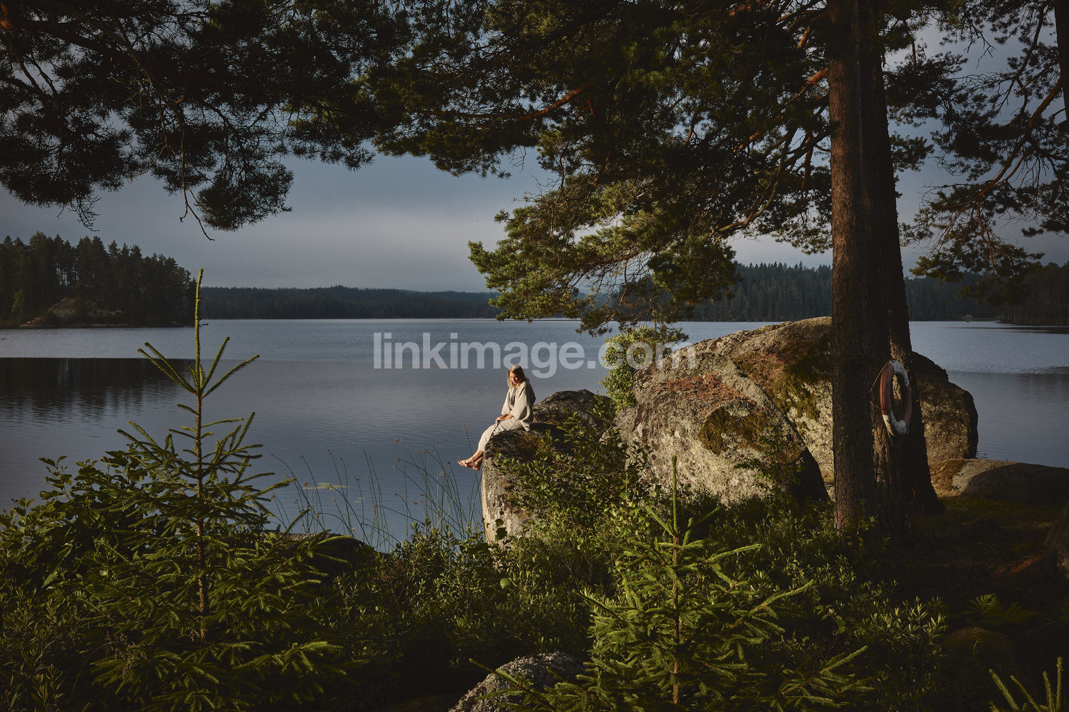 - a woman, girl, 25-35 years, housecoat, morning, sunrise, lake, water, meditation, wake, solar, cloud, early, reflection