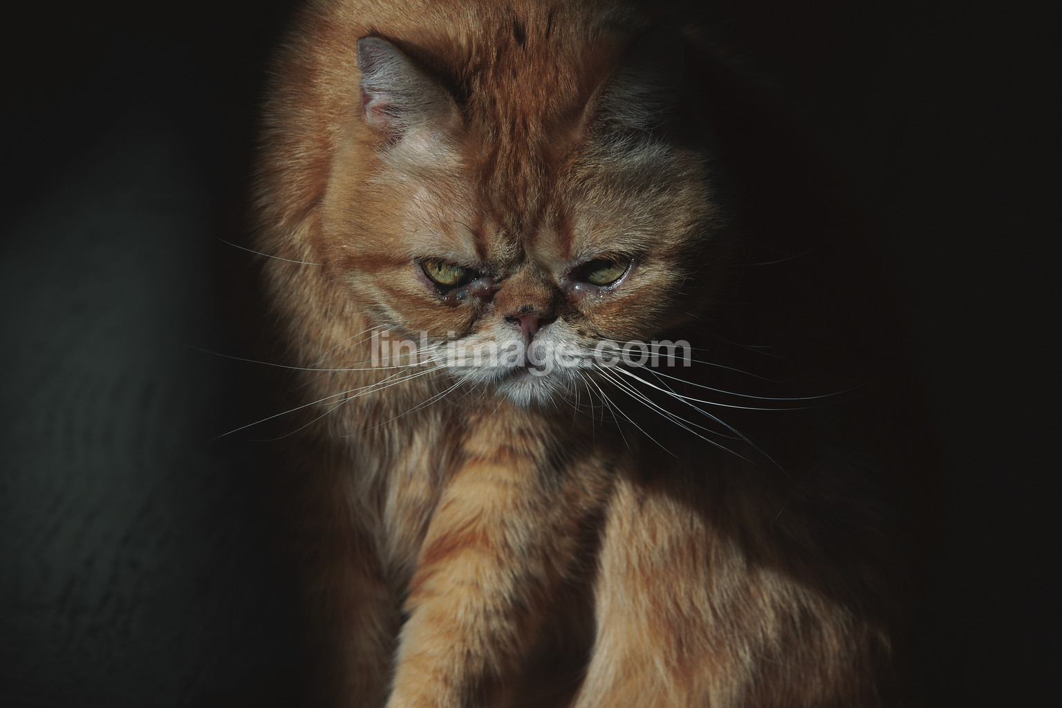- cat, persian, exotic, style study, expression, animal, studio, poser, pets, humor, sour, red