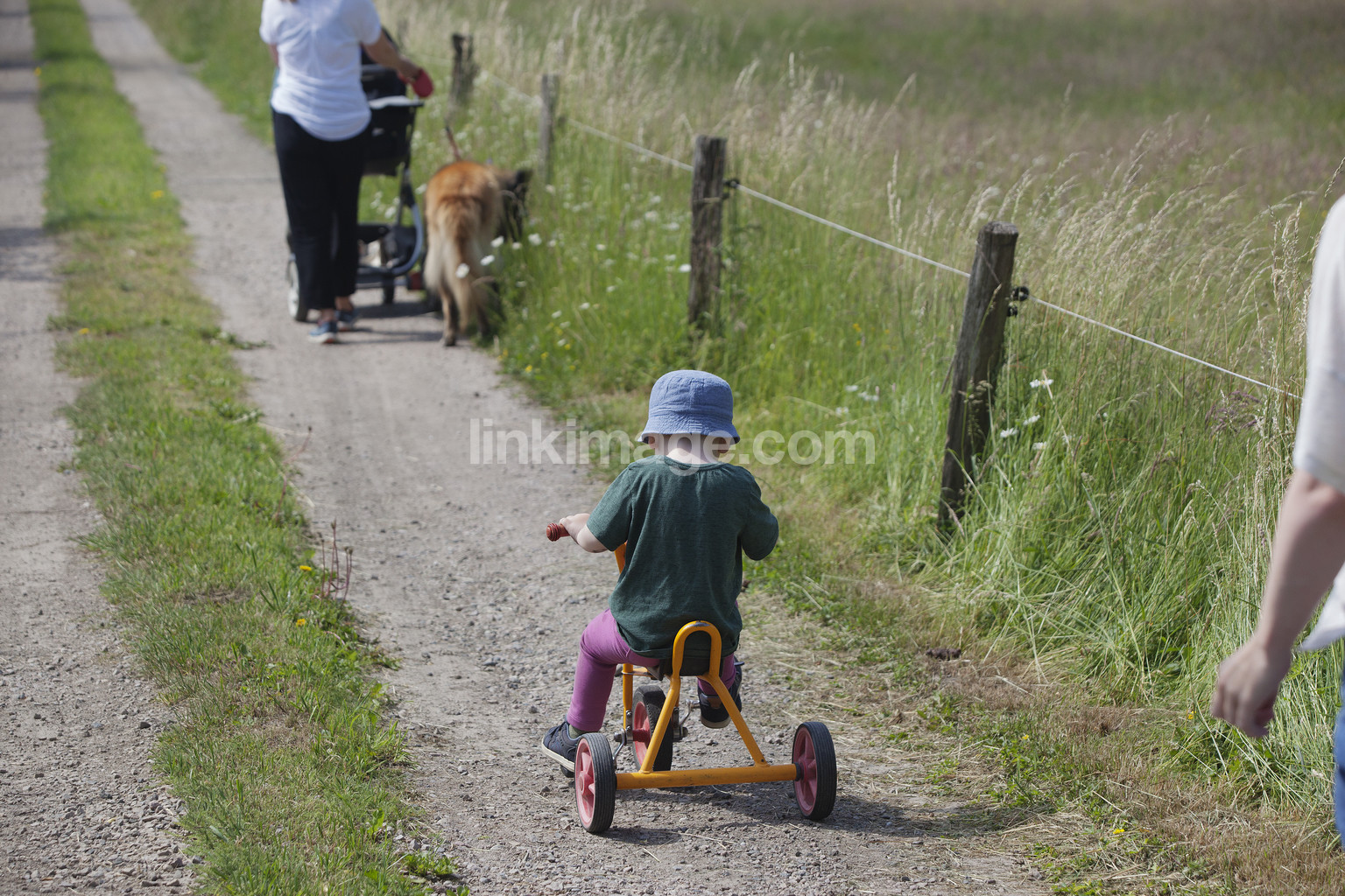 - walk, the country, family, cycling, tricycle, children, boy, dog, practice, train, stroller, country road