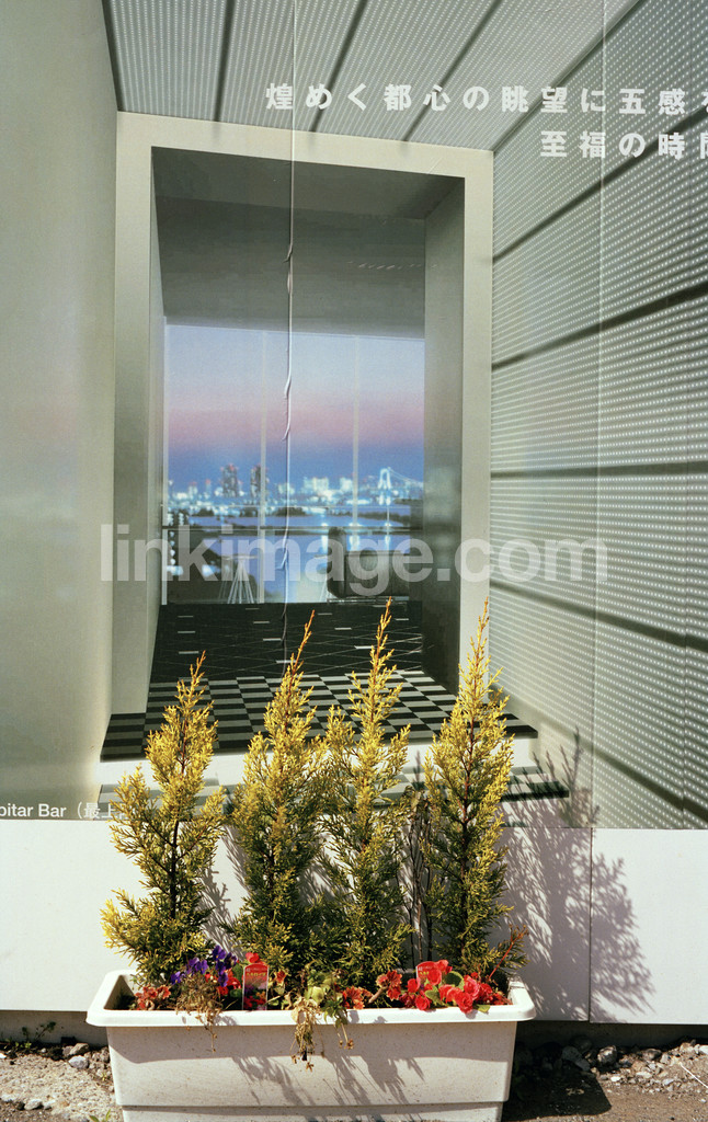 - Flower box in front of billboard. tokyo. japan