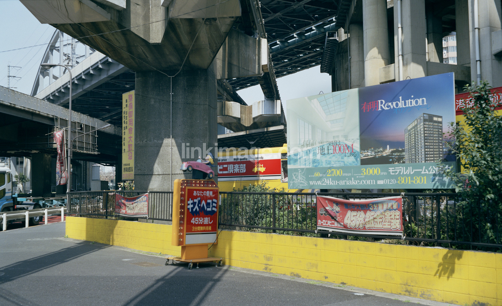 - Advertising signs during railway bridge. tokyo. japan