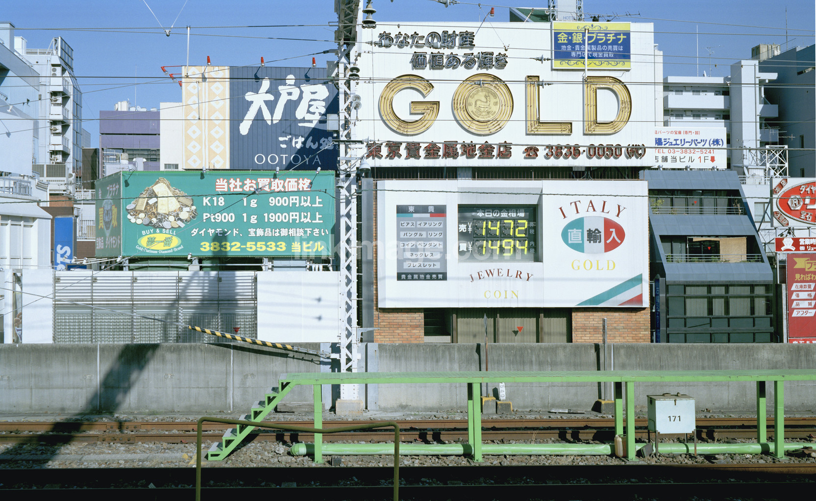 Advertising signs along the railway. Tokyo. Japan