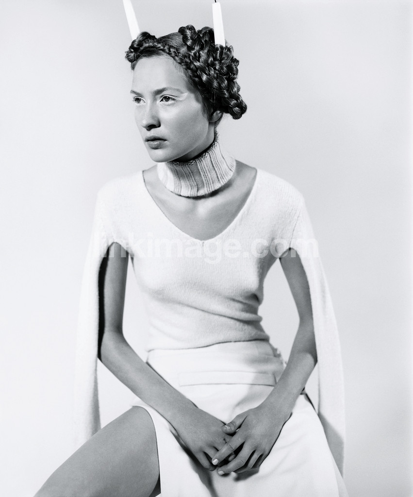 - model, female, girl, braids, hair, hairstyle, light, white, fashion, candles, dress, mj041