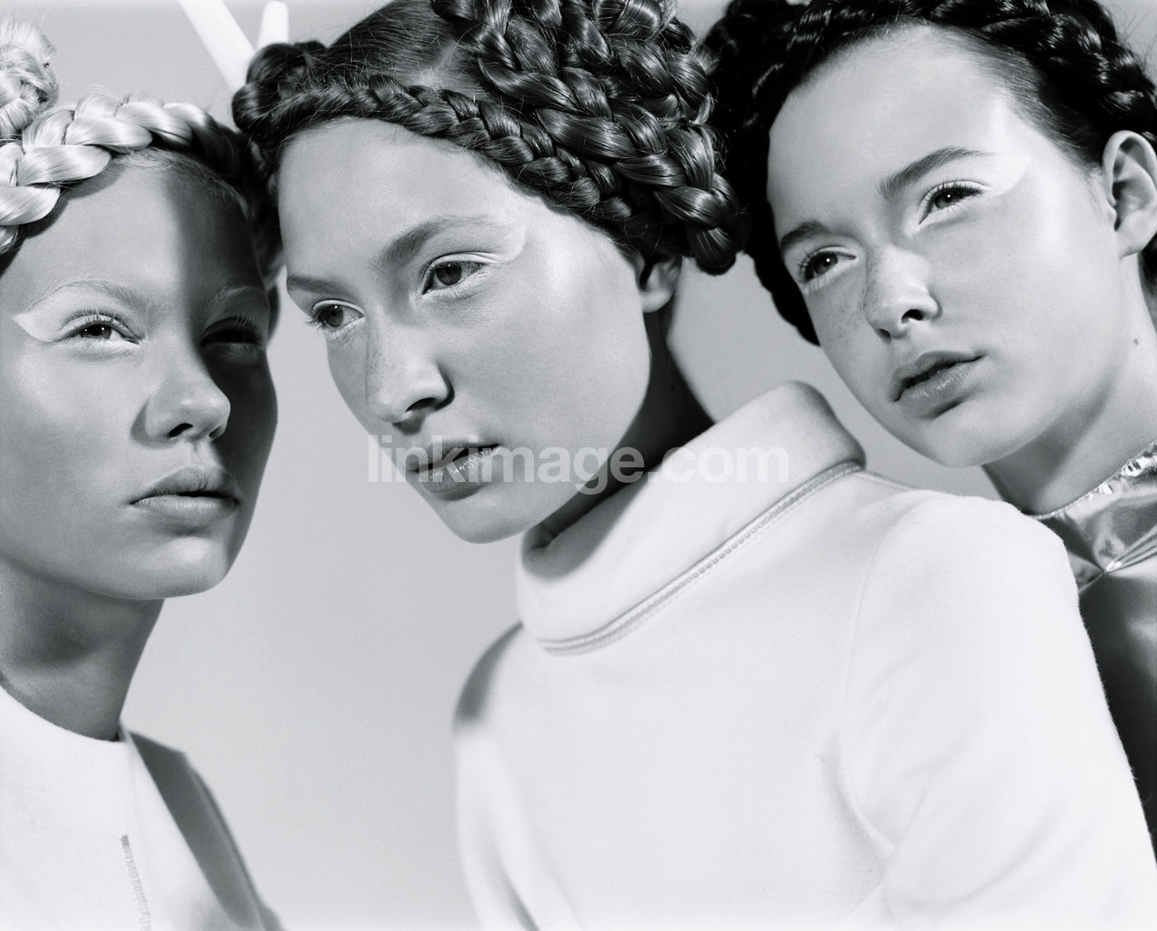 - white, studio, girls, girls, women, portrait, fashion, models, hair, hairstyles, braids, mj037