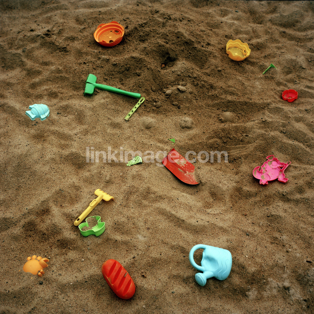 fate, children, time, sandbox, shore, toys, rake, shovels, bucket, left, missed