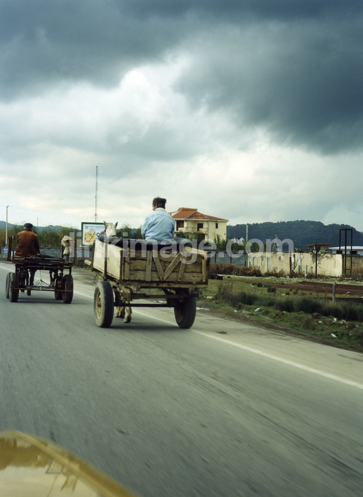 - albania, tirana, horse, and, wheeler, stance, equipage, old, car, as, run, by, horses, street, road, transport, jn380