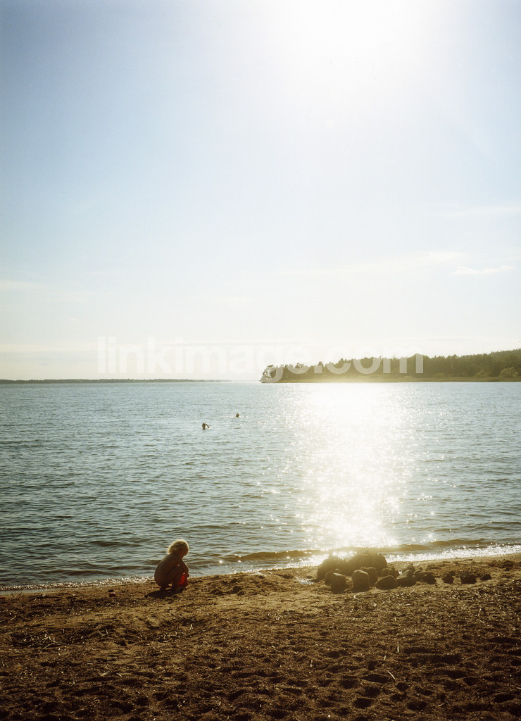 shore, sand, summer, water, lake, children, play, swim, jn415, horizon, sun, reflection