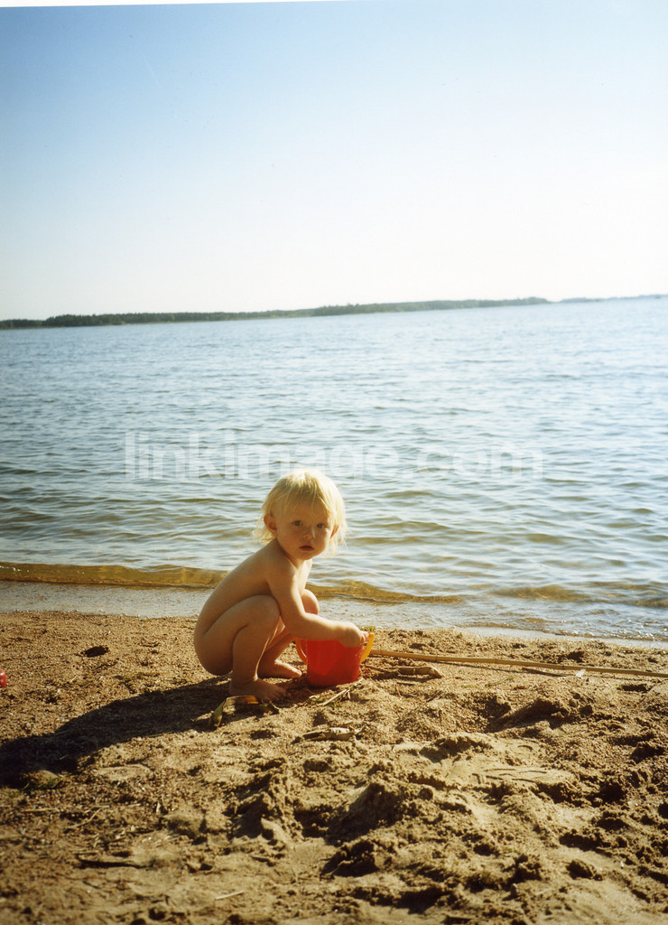 shore, sand, summer, water, lake, children, play, jn416, bucket, horizon, sky, shadow