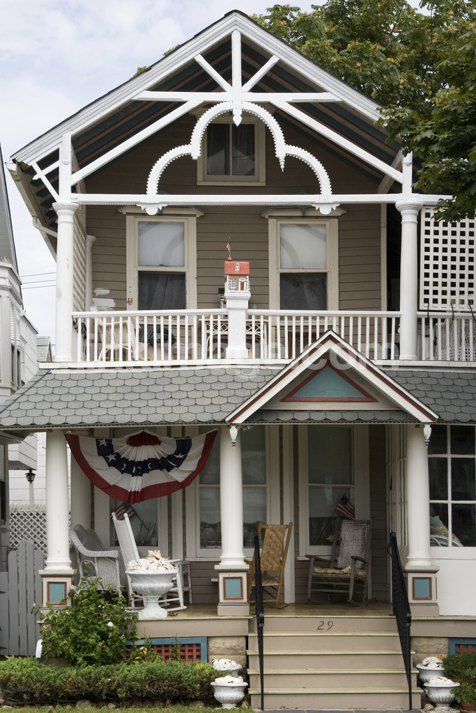 - wooden architecture, flag, gingerbread, porch, america, buildings, residential environment, homes
