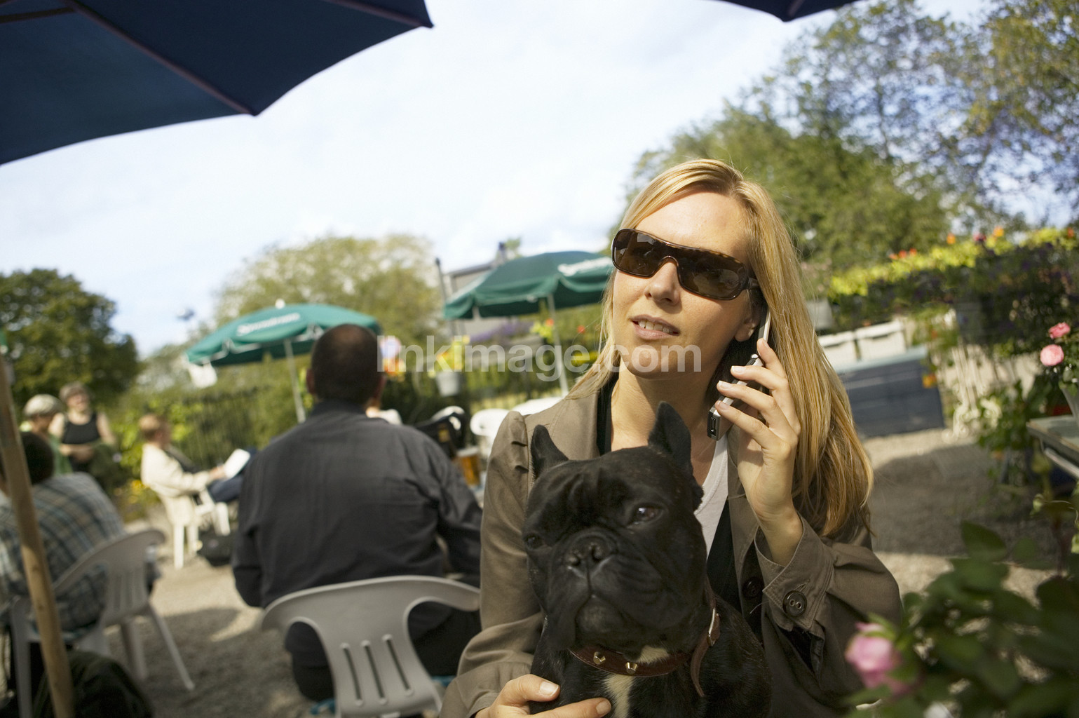 - girl, female, mobile, sun, else, cafe, out, dog, sunglasses