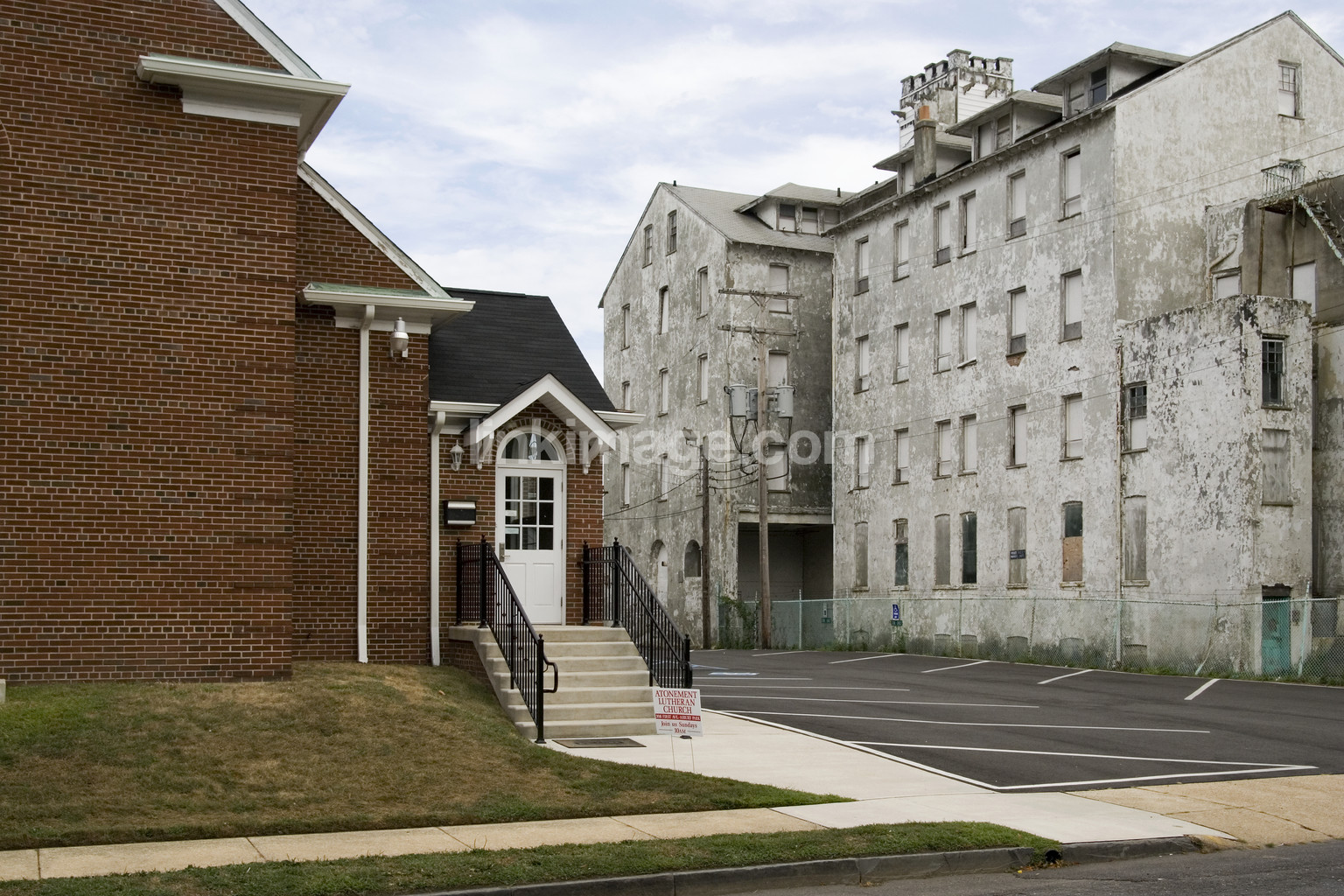 Overdue hotel and entrance to the church. Asbury Park, USA
