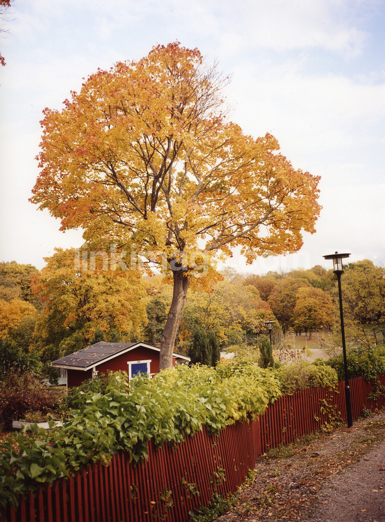 - cottage, house, shed, contryside, garden, encircle, autumn, red, orange, leaf, lamp, mail, path, jn554, fall, fence, bushes, lamppost