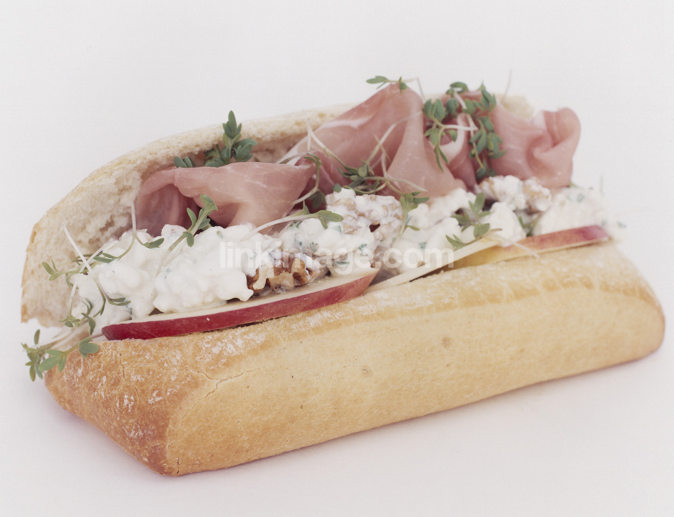 - sandwich, bread, feed, lunch, meal, ham, cottage cheese, ciabatta, jn594, vegetables, application