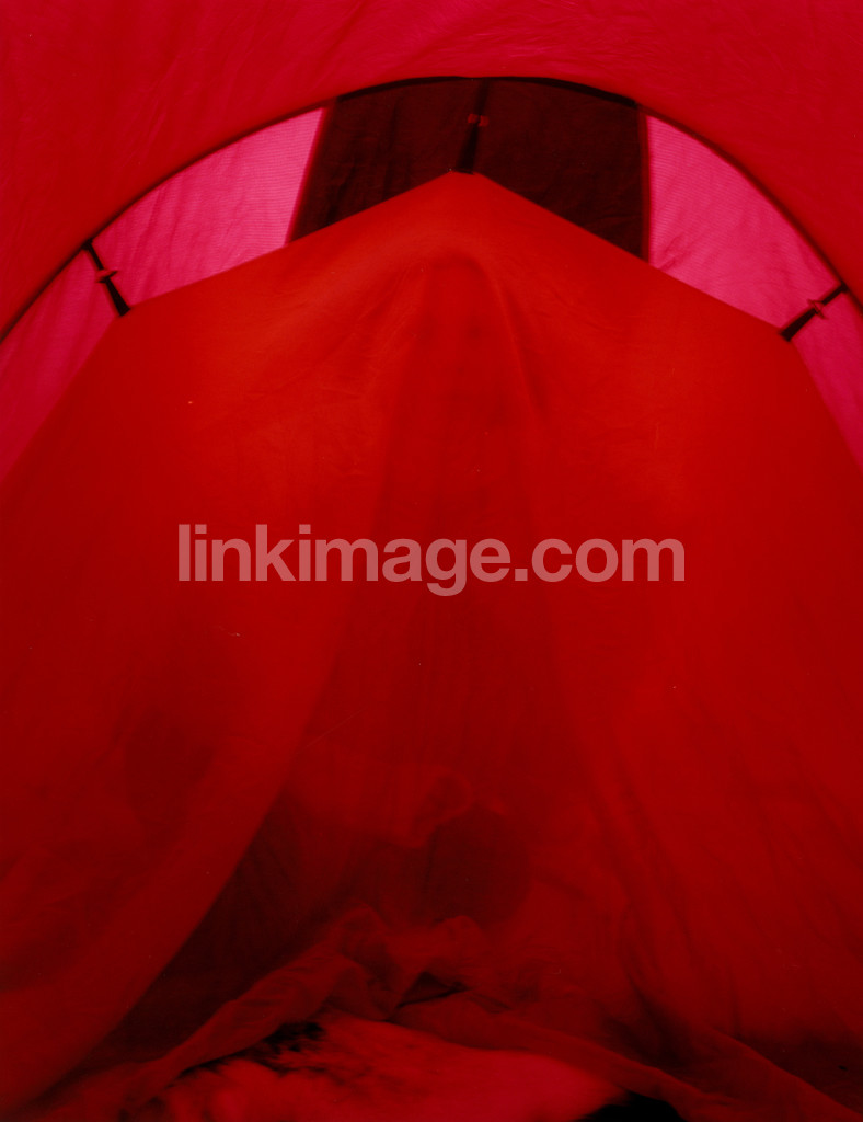- red, tent, abstract, trapped, mh222, female, sitting, behind, inside, rag